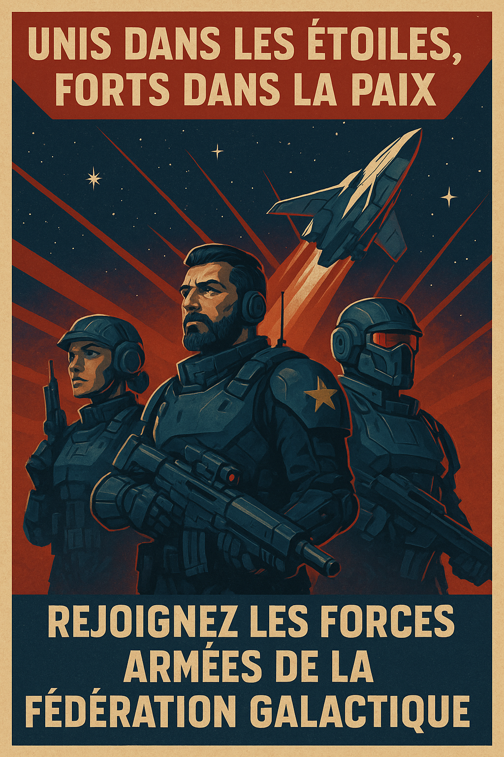 L’Armée Fédérale est l’institution militaire suprême de la Fédération Galactique, chargée d’assurer la défense des territoires fédéraux, de garantir l’ordre intérieur et de protéger les intérêts de la Fédération dans la galaxie. C’est l’un des rares corps encore fonctionnels et respectés au sein d’une structure gouvernementale de plus en plus décriée.